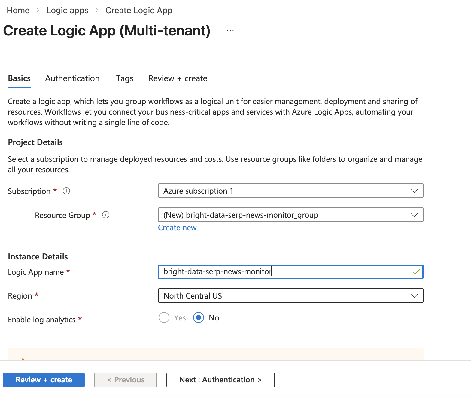 点击 Review + Create,然后点击 Create 部署你的 Logic App。