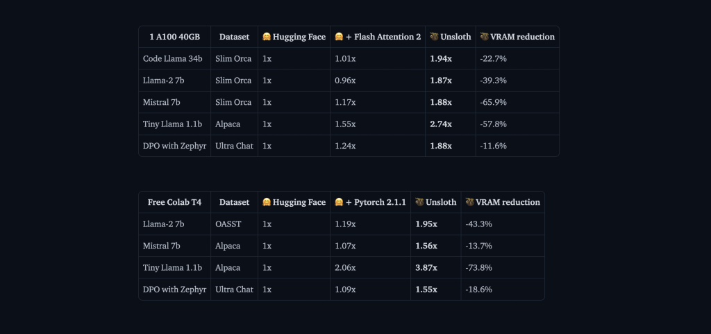 Unsloth 带来的性能提升非常亮眼。在基准测试中,相比标准 transformers 实现,它能实现 2 倍训练速度,同时降低 40% 的内存占用。这意味着你可以在相同硬件上训练更大的模型或使用更大的 batch size。更重要的是,它几乎不带来精度损失(0% 准确率下降),因此你可以在不牺牲模型质量的情况下获得这些收益。