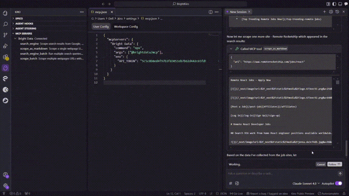 Bright Data 的 MCP 工具帮助 Kiro 自动处理: