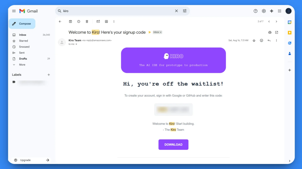 在安装 Kiro 前,你需要先在 kiro.dev 加入候补名单并获得访问确认。获得访问权限后,按照官方安装指南进行安装。