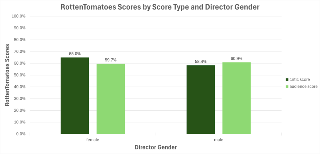 电影观众对男性导演的电影评分比评论家高出2.5%,而女性导演的电影评分则比评论家低了5.3%。