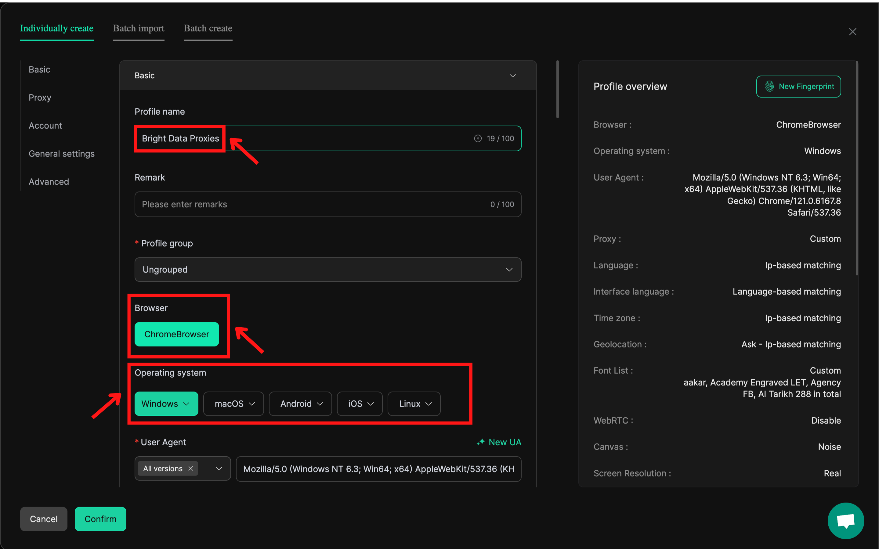 - 选择浏览器与操作系统。