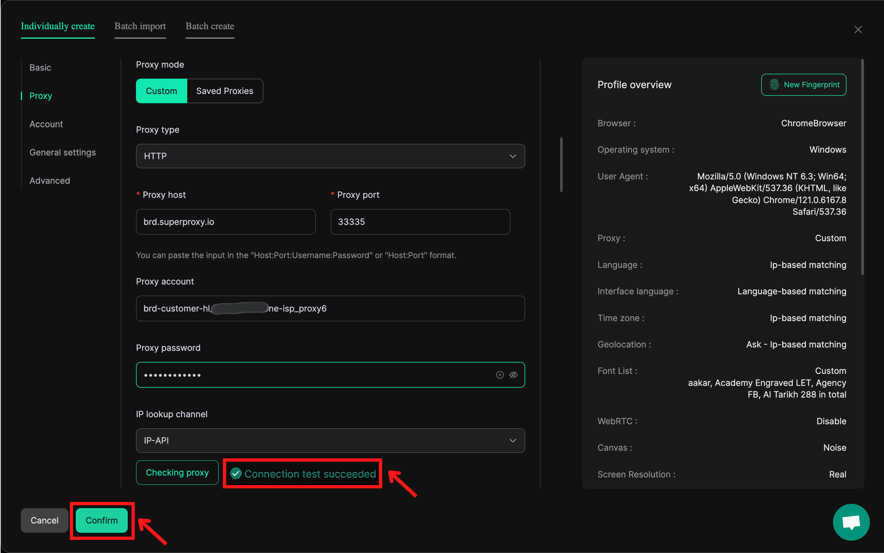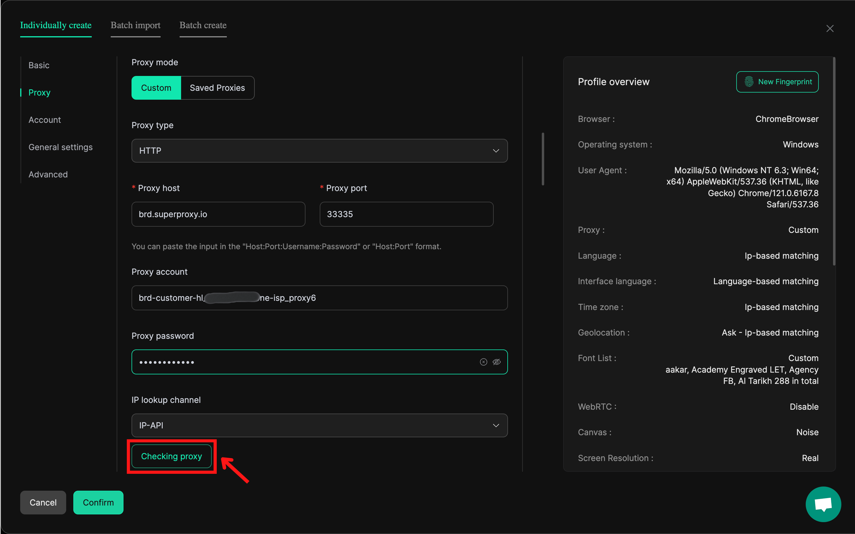 - 点击 ‘Check Proxy’(检查代理)按钮测试连接。