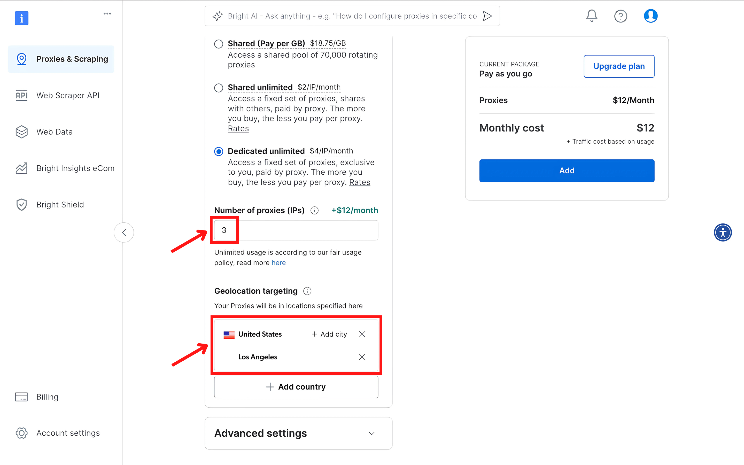 - 指定 IP 数量,并为 IP 位置选择所需的国家和城市。