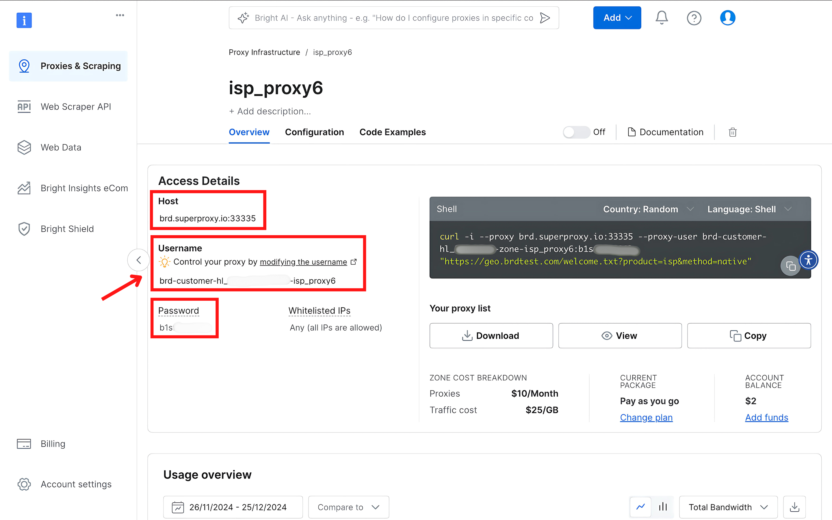 - Password:输入你的 Bright Data 密码。