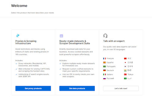 步骤 2:登录控制台,点击“Get proxy products”,创建一个代理 Zone