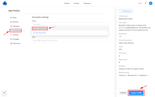 使用 Bright Data 代理设置 Octo Browser: