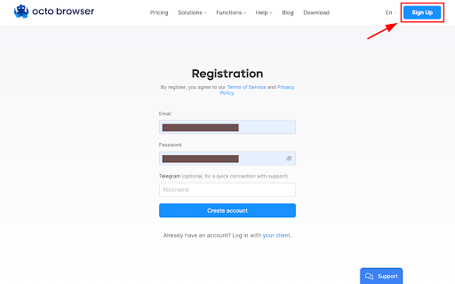 注册 一个免费的 Octo Browser 账号。