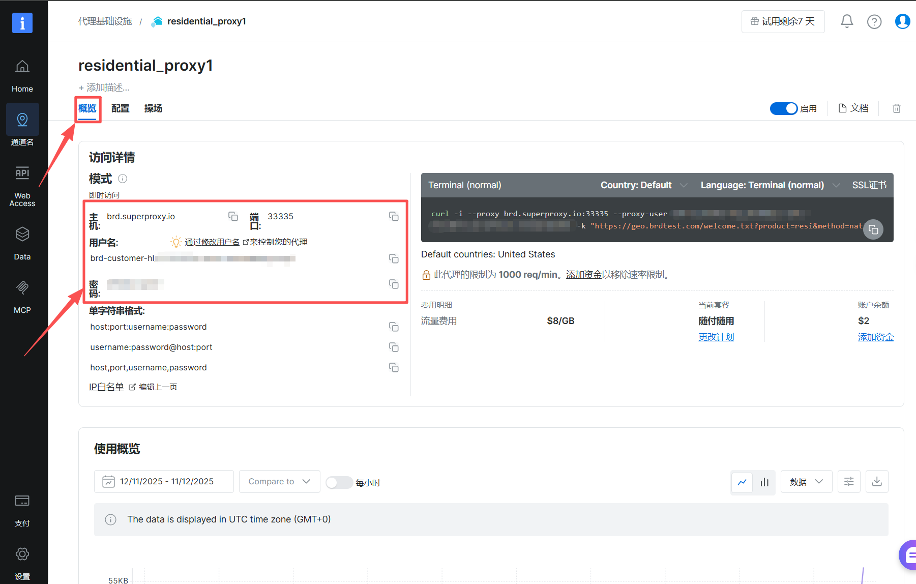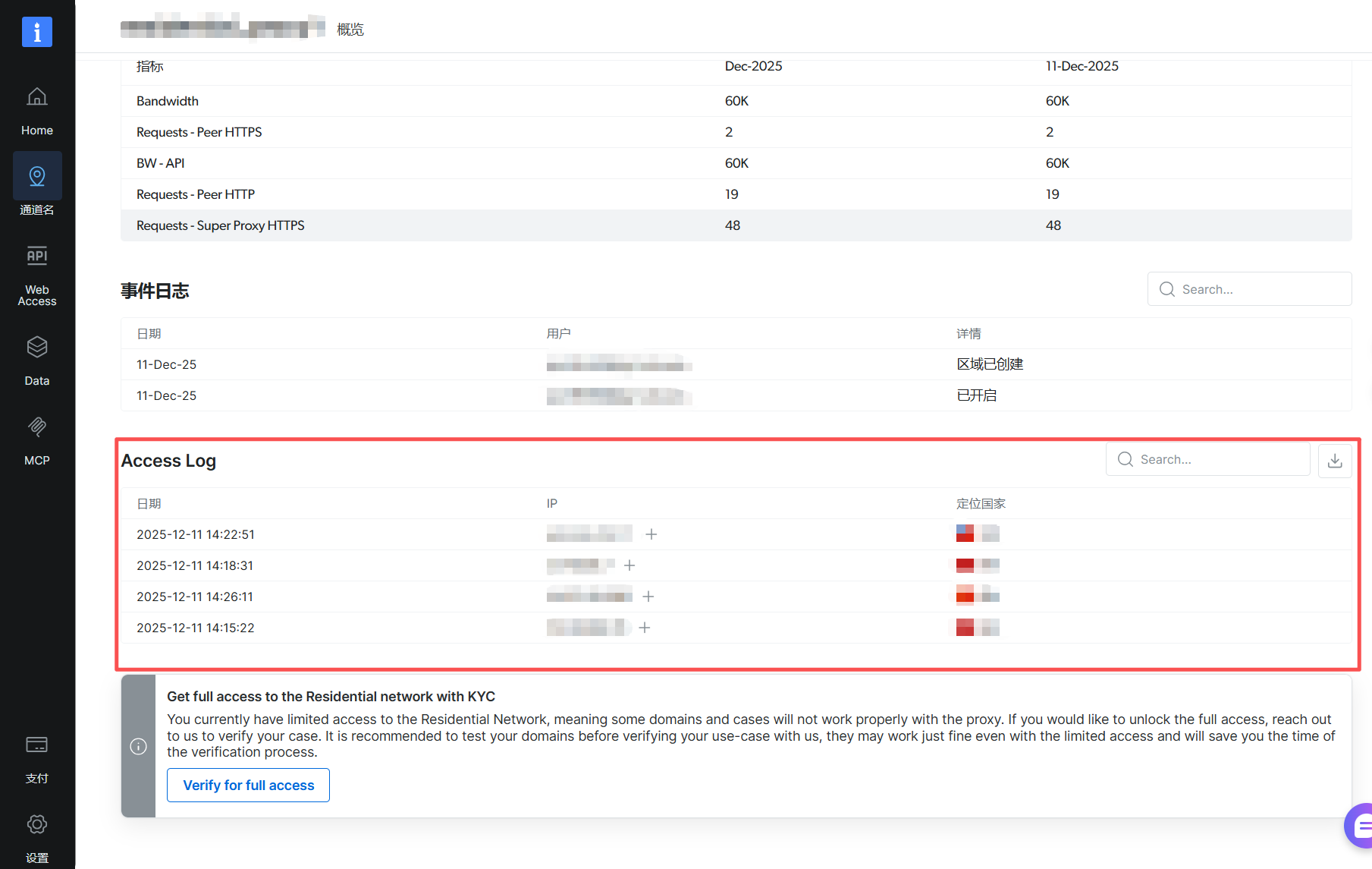 此外,本次集成需要进行 KYC(了解您的客户)验证。更多信息请点击:https://docs.brightdata.com/proxy-networks/residential/network-access#kyc-verification