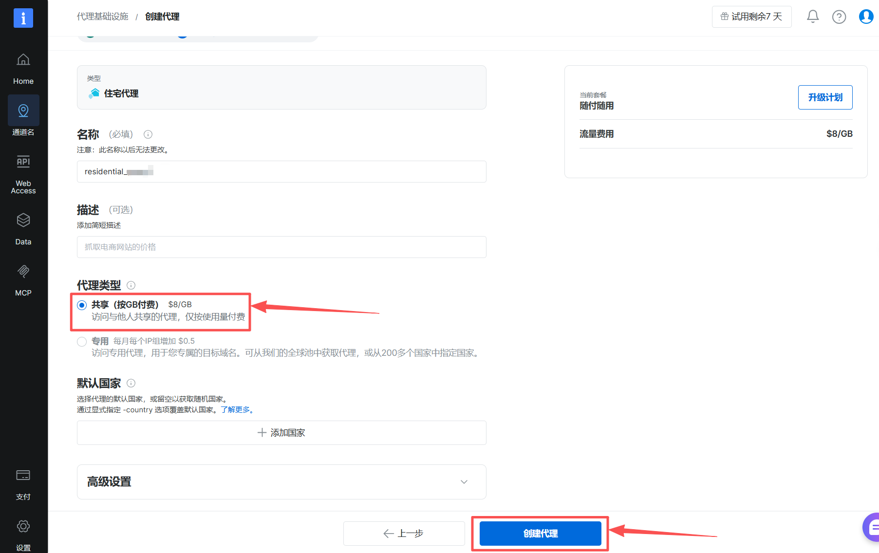 代理网络定价