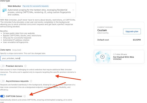 在渲染截图时,你可能会遇到 CAPTCHA,或被某些网站阻止请求。这正是 Bright Data 的 Web Unlocker 发挥作用的地方。