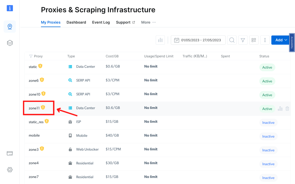 ⚠️重要提示:如果你使用的是 Bright Data 的住宅代理(Residential Proxies)、Web Unlocker 或 SERP API,则需要安装 SSL 证书,以启用与目标网站之间端到端的安全连接。这是一个简单的过程,安装说明请参见 https://docs.brightdata.com/general/account/ssl-certificate#installation-of-the-ssl-certificate。