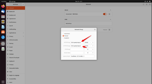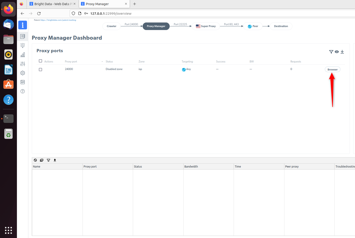 如果你决定下载 Proxy Manager,请确保回到 Ubuntu 网络设置中将代理模式改为自动化(automate),因为你无法使用我们自己的代理去访问 Bright Data 网站。